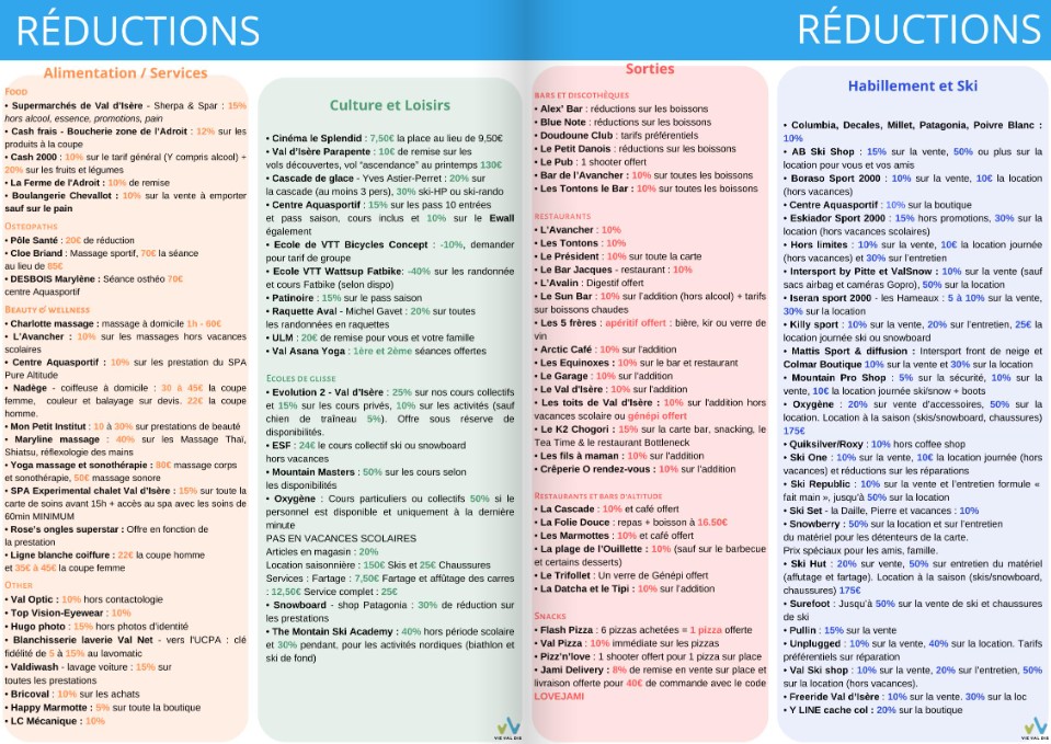 The Vie Val d’Is card is available to people working in Val d’Isère and to their families (with certain conditions). This card aims to help cut the high cost of living in Val d’isère which is one of the main goals of the association.