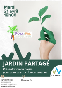 - Jardin partagé : Mardi 21 avril 2026