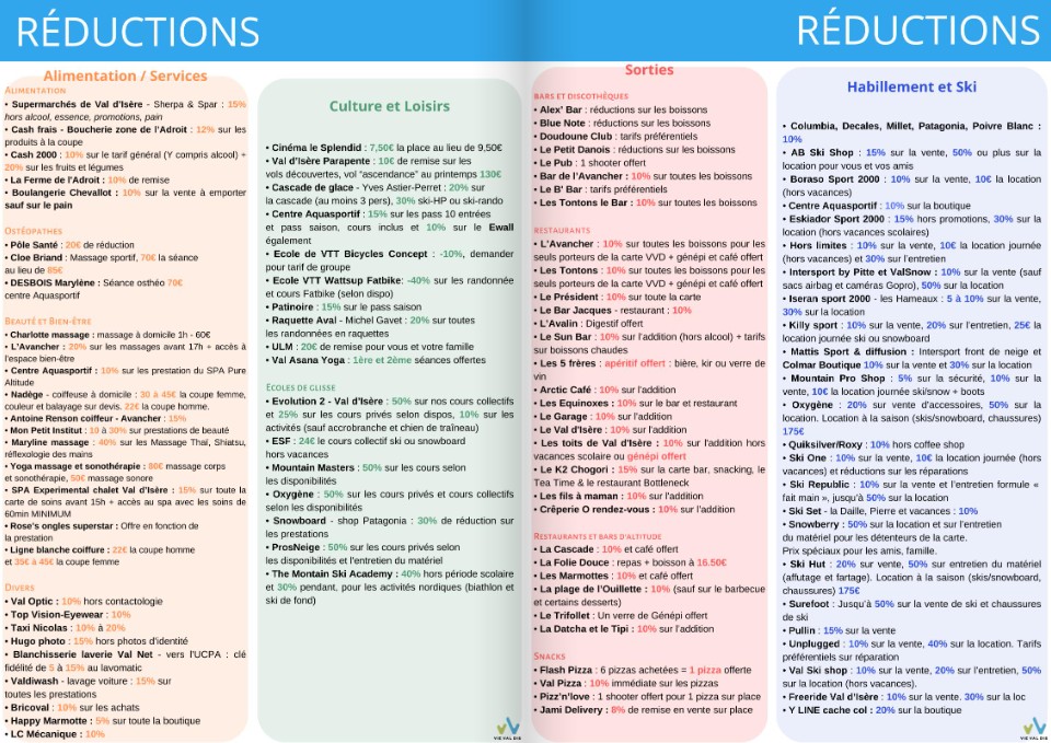 – Des réductions dans plus de 100 commerces partenaires de la station et ainsi qu’un tarif préférentiel sur le forfait de ski saison !