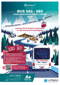 Lignes S82/S83 : désormais disponibles TOUTE L’ANNÉE ! Reliez Bourg-Saint-Maurice, Séez Centre, Sainte-Foy Village, Tignes 1800 et Val d’Isère 365 jours par an.